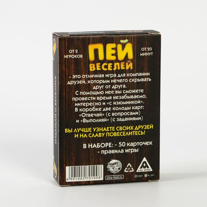 Купить игра для компании "пей веселей" 50 карт от 180 руб. с доставкой до пункта выдачи в Смоленске. Интернет магазин ДекаМаркет. Оплата при получении.