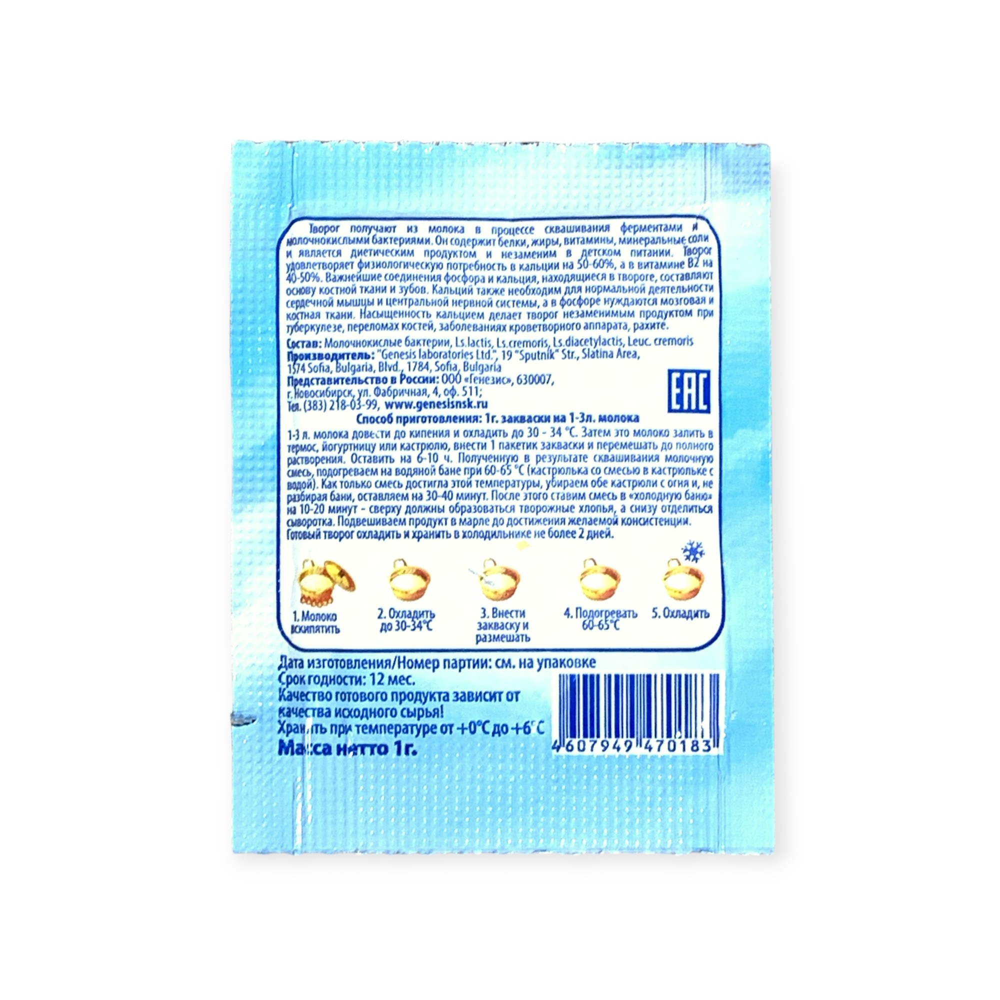 Закваска Творожок Genesis, 1 пакет от 100 руб. с доставкой. Пункт выдачи в Смоленске. Интернет магазин по сыроделию. Всё всегда в наличии.